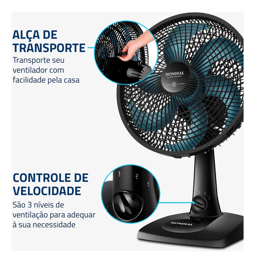Ventilador De Mesa Mondial Super Power 6 Pás 30cm Preto Azul Vsp30ap | Shopping Fag